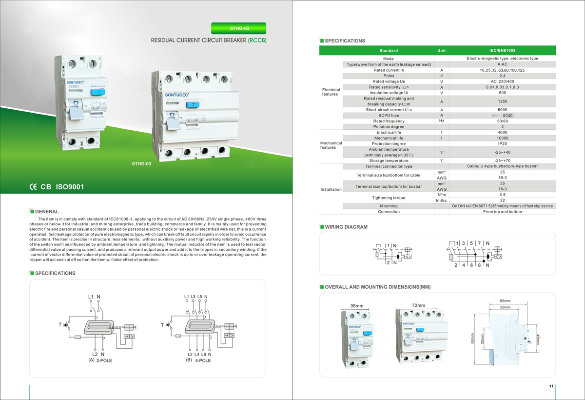 Сонтуоек яке аз таъминкунандагони чинӣ / истеҳсолкунандагони чинӣ, ки дар истеҳсоли техникаи гуногуни барқ тахассус аст, он ба таври худкор як қуттӣ истифода бурда мешавад ва фавран аз зарбаи барқ ё ихроҷшуда дар боло нишондодашуда истифода мешавад. Он метавонад амнияти шахсиро самаранок ҳимоя кунад ва аз зарар ба таҷҳизот канорагирӣ кунад. Панкари боқимондаи ҳозира инчунин метавонад ҳамчун изофабор ва муҳофизати кӯтоҳмуддат ва тағирёбии нотаркида фаъолият кунад ва тағирёбии нотаркони сатр дар ҳолати муқаррарӣ фаъолият кунад. Маҳсулот барои саноат, тиҷорат, бино, истиқомат ва ғайра мувофиқ аст. Он мутобиқат бо стандартҳои IEC61008-1 мебошад.
