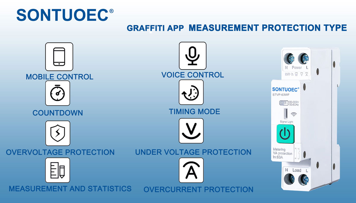Сонтуоек яке аз таъминкунандагони чинӣ / истеҳсолкунандагони хитоӣ, ки дар WiFI-ҳост барои пахши шиддати радиоиву барқӣ, ки шиддати шодитии назорати барқро дур мекунад, ҳимоятгари шиддати дурдастро бартараф намуда, пешгирии қарорҳои оқилона барои назорати ноҳиявӣ. His functional features include intelligent remote control, security protection, and precise measurement Suitable for smart home systems, users can remotely control home appliances through a mobile app to achieve personalized scene settings and energy-saving management; Он ҳамчунин дар ҷойҳои тиҷоратӣ, офисозӣ ва дигар, мусоидат ба мониторинг ва назорати муттасили барқ, такмили самаранокии идоракунӣ ва ҷавобгӯи эҳтиёҷоти гуногуни ҷабрдидаи муосир ва кор.